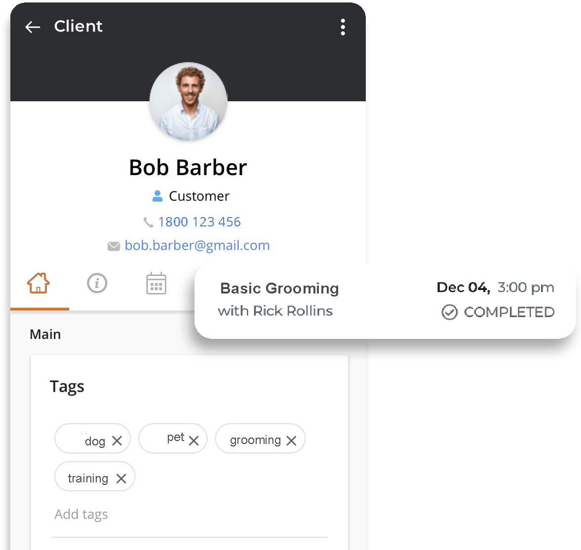 Make it easy for customers to share info online or at the time of service, and keep it stored in one place. Create custom fields to track customers important details like animal type, breed, birthday and any other information you need.